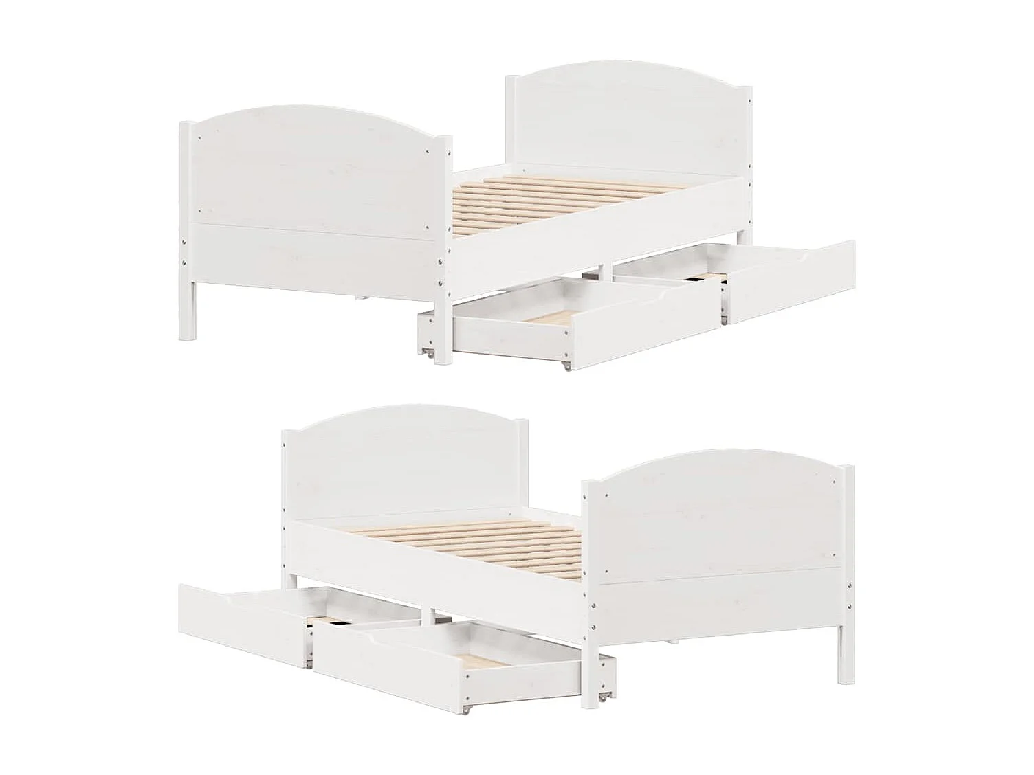 Lit simple | Lit adulte, enfant | Cadre de lit blanc 90x190 cm bois de pin massif