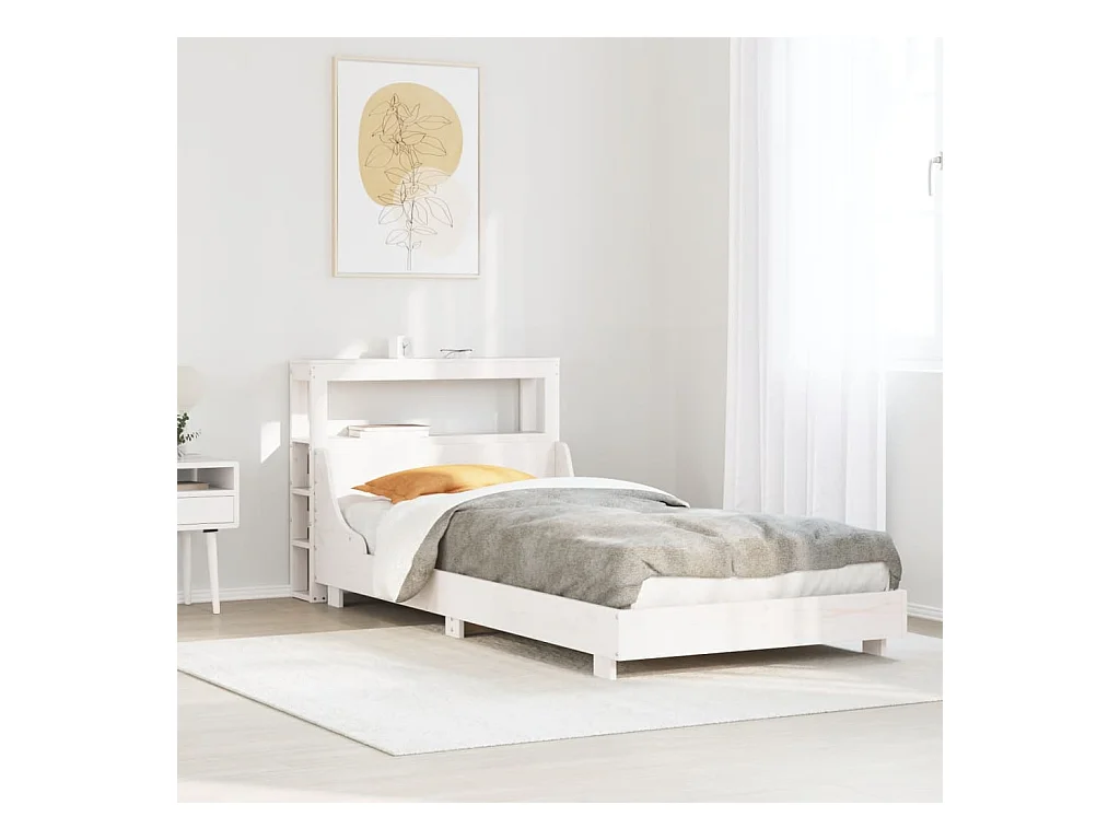 Lit simple | Lit adulte, enfant | Cadre de lit blanc 90x190 cm bois de pin massif
