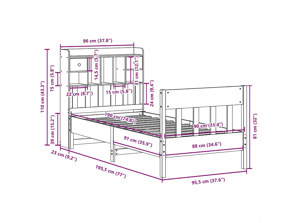 Lit simple | Lit adulte, enfant | Cadre de lit blanc 90x190 cm bois de pin massif