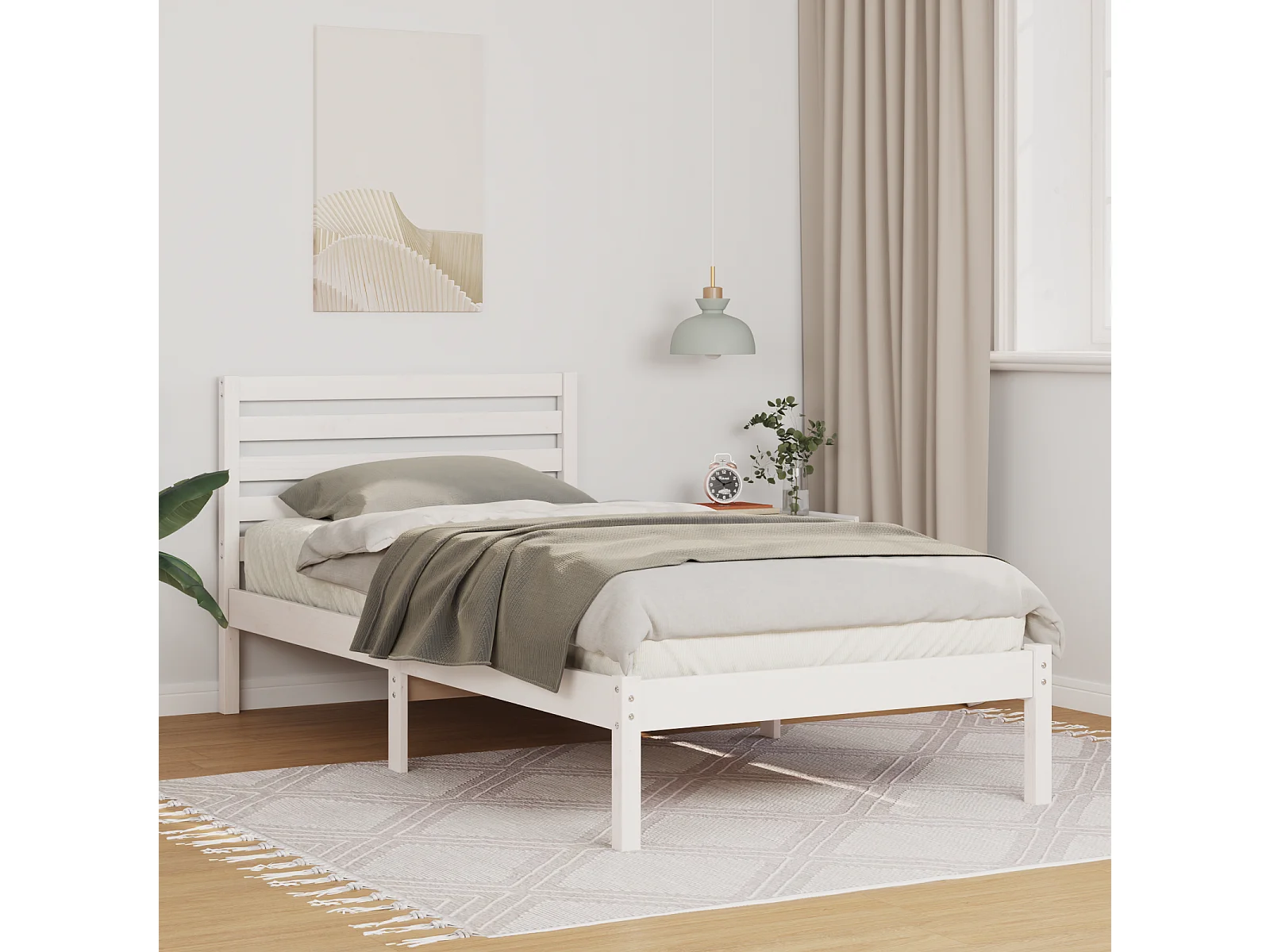 Lit simple | Lit adulte, enfant | Cadre de lit blanc bois de pin massif 90x190 cm