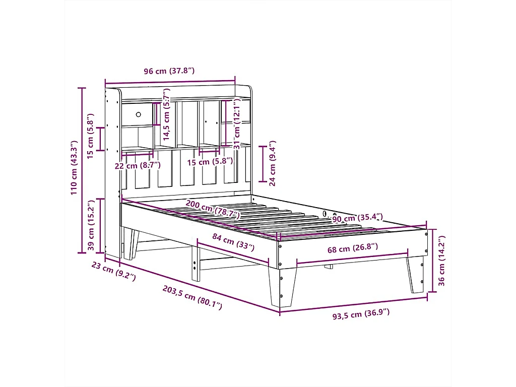 Lit simple | Lit adulte, enfant | Cadre de lit blanc 90x200 cm bois de pin massif
