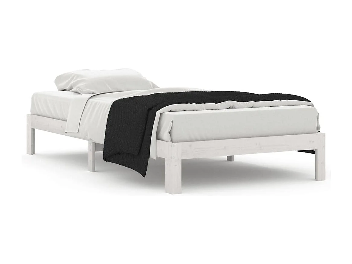 Lit simple | Lit adulte, enfant | Cadre de lit blanc bois massif 100x200 cm