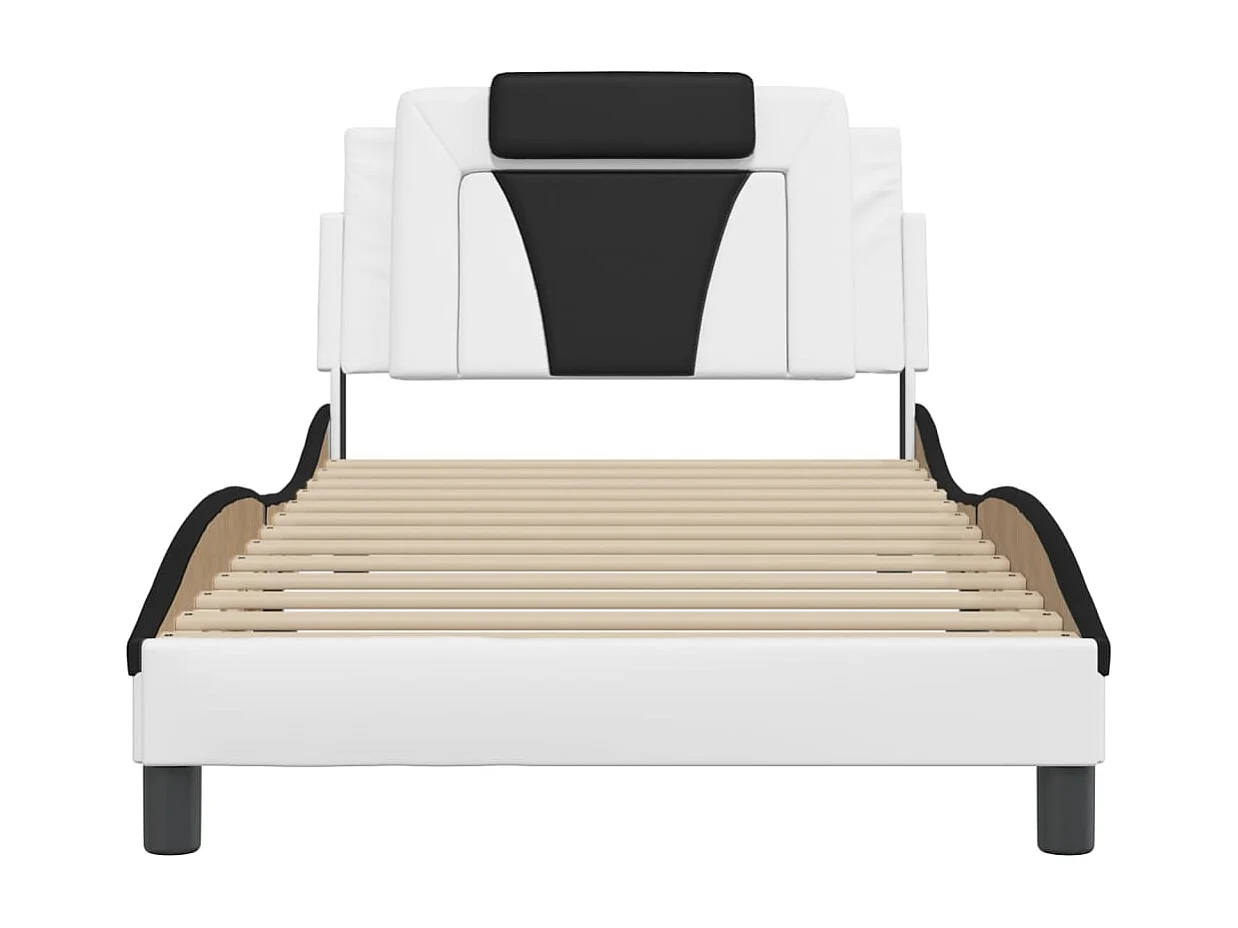 Lit simple | Lit adulte, enfant | Cadre de lit blanc et noir 100x200 cm similicuir
