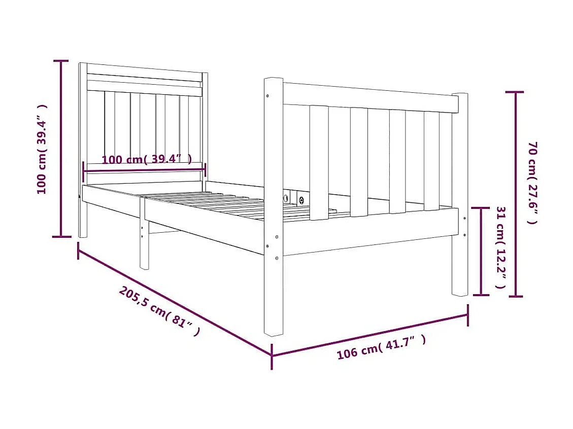 Lit simple | Lit adulte, enfant | Cadre de lit bois massif 100x200 cm
