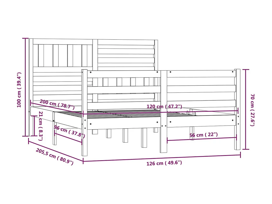Lit simple | Lit adulte, enfant | Cadre de lit bois massif 120x200 cm
