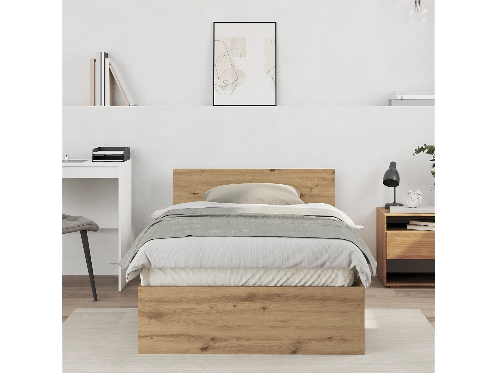 Lit simple | Lit adulte, enfant | Cadre de lit Chêne artisanal 100x200 cm Bois d'ingénierie