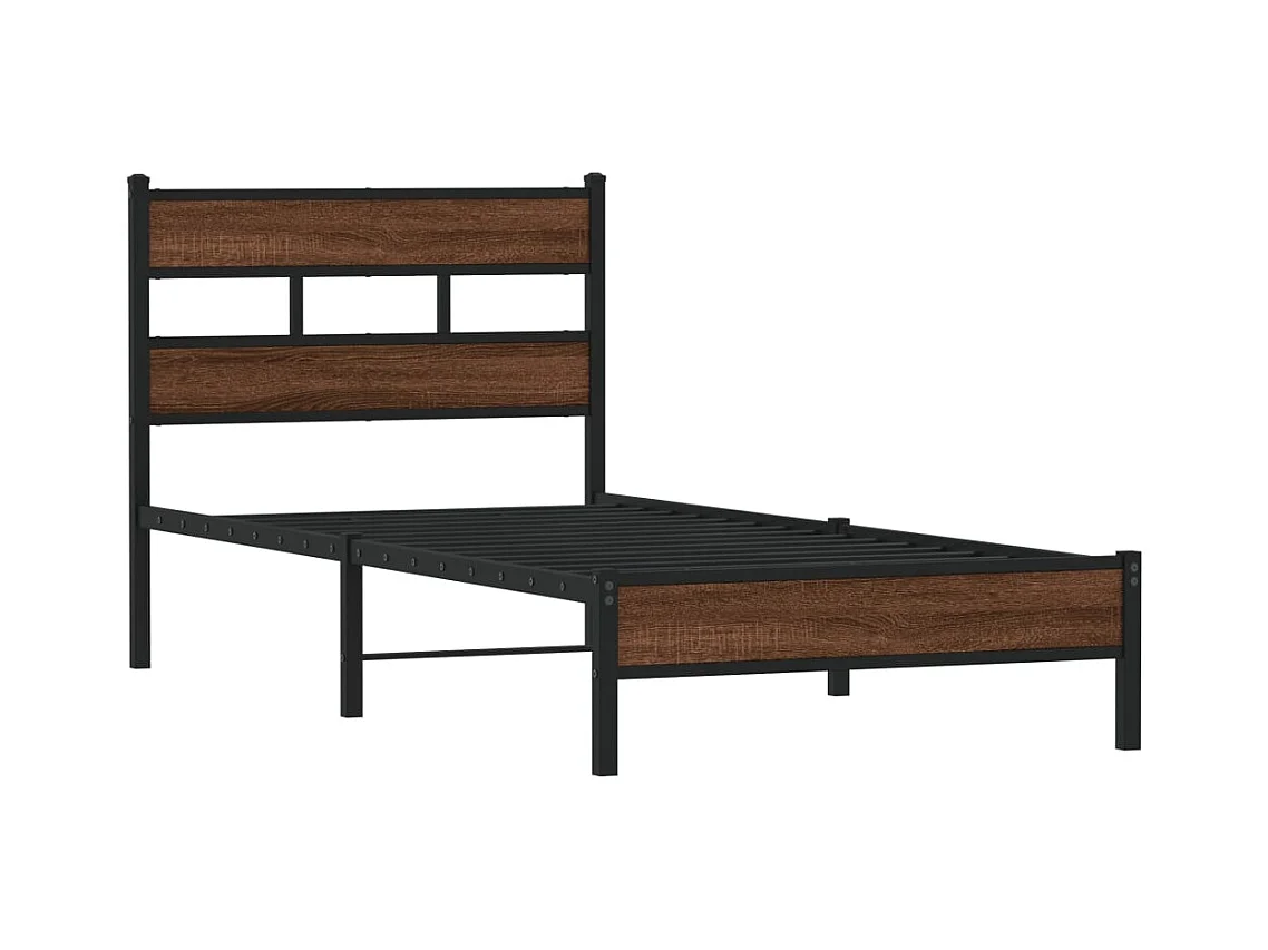 Cadre de lit en métal sans matelas chêne marron 90x190 cm