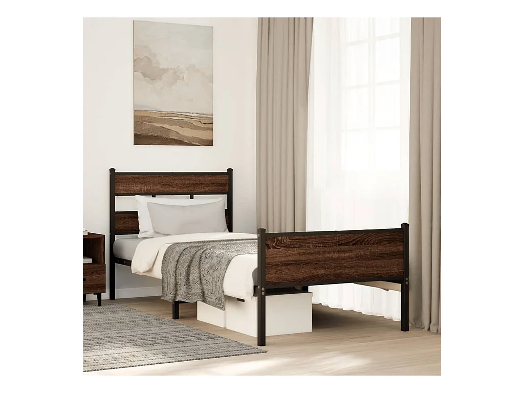Cadre de lit en métal sans matelas chêne fumé 100x190 cm