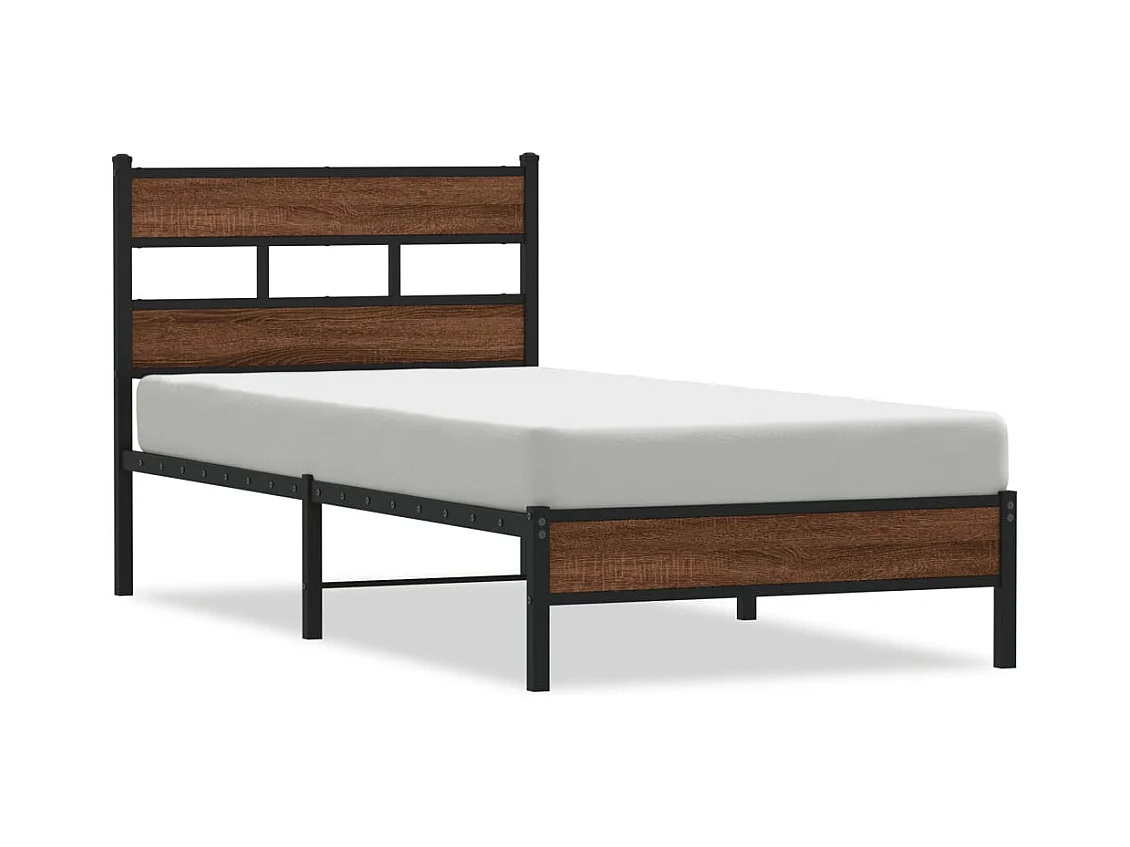Cadre de lit en métal sans matelas chêne marron 75x190 cm