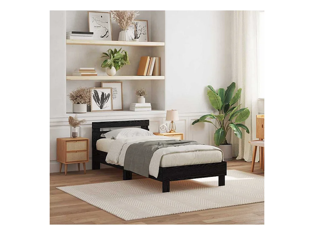 Cadre de lit sans matelas noir 100x200 cm bois d'ingénierie