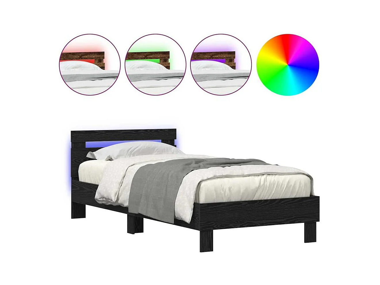 Lit simple | Lit adulte, enfant | Cadre de lit avec LED noir 100x200 cm