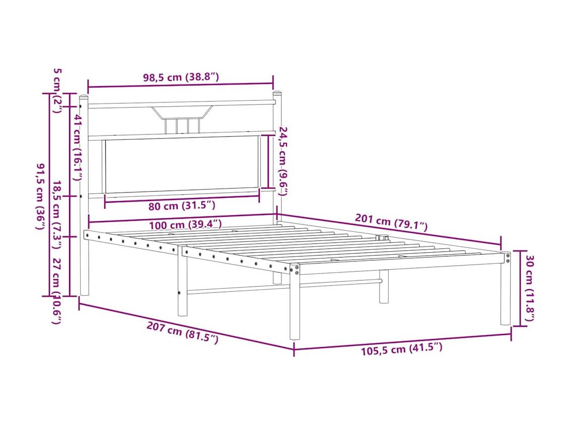 Lit simple | Lit adulte, enfant | Cadre de lit chêne sonoma 100x200 cm