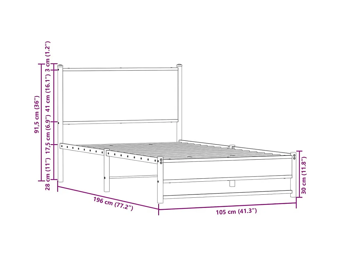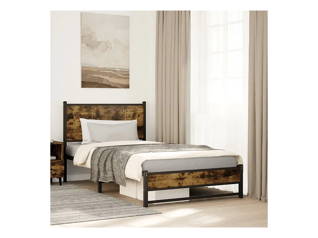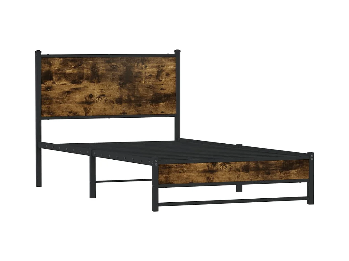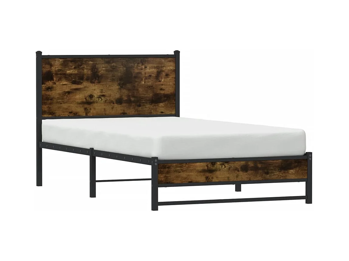 Cadre de lit en métal sans matelas chêne fumé 90x190 cm