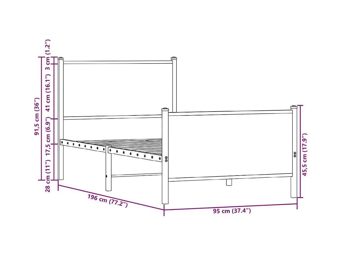 Cadre de lit en métal sans matelas chêne fumé 90x190 cm