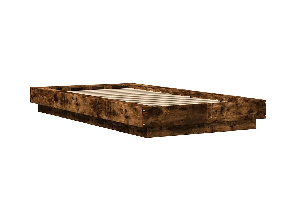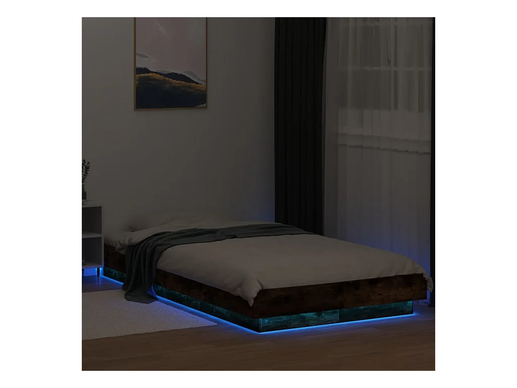 Lit simple | Lit adulte, enfant | Cadre de lit et lumières LED chêne fumé 100x200 cm