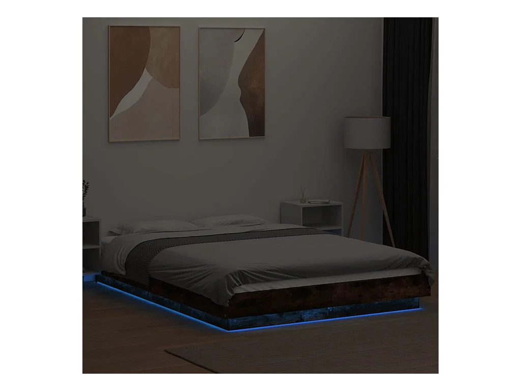 Lit simple | Lit adulte, enfant | Cadre de lit et lumières LED chêne fumé 120x190cm