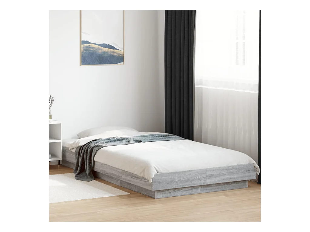 Lit simple | Lit adulte, enfant | Cadre de lit et lumières LED sonoma gris 90x200 cm