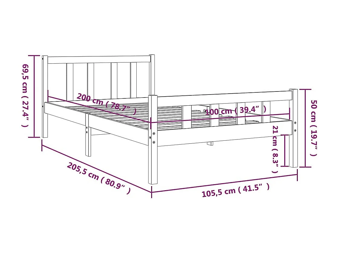 Lit simple | Lit adulte, enfant | Cadre de lit gris bois massif 100x200 cm