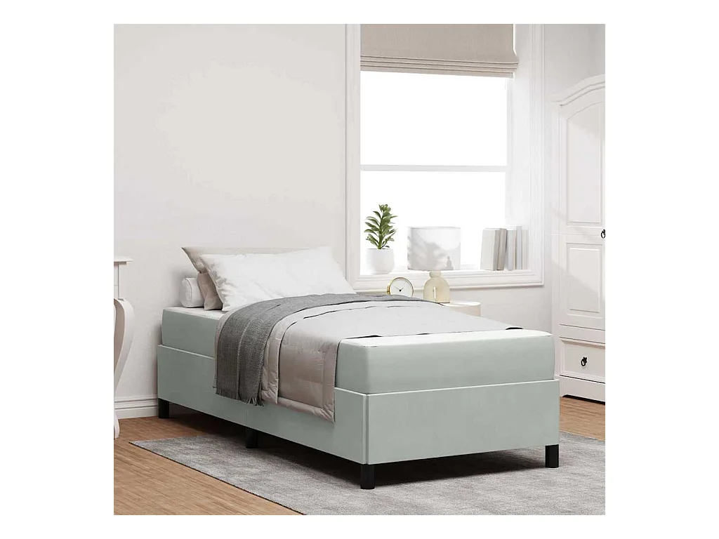 Lit simple | Lit adulte, enfant | Cadre de lit Gris clair gris et blanc 90x190 cm Velours