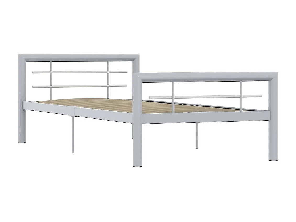 Lit simple | Lit adulte, enfant | Cadre de lit gris et blanc métal 90x200 cm