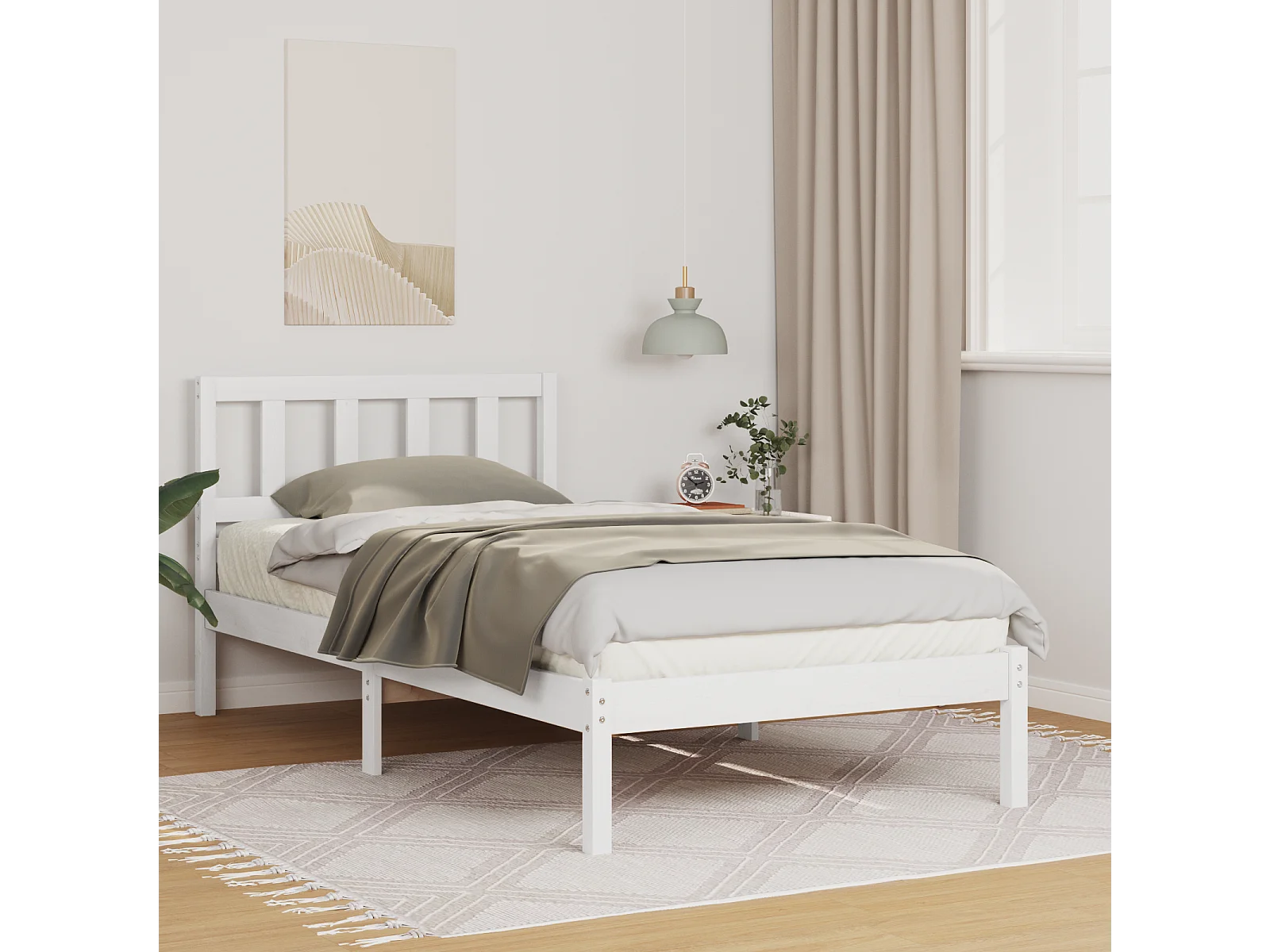 Lit simple | Lit adulte, enfant | Cadre de lit blanc 100x200 cm bois de pin massif