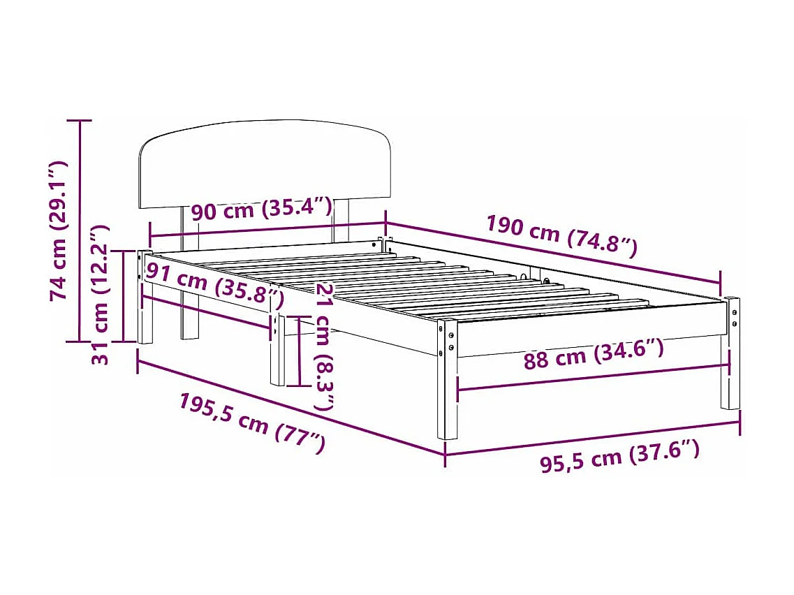 Lit-90x190 cm avec tête de lit simple bois massif EGGB98755