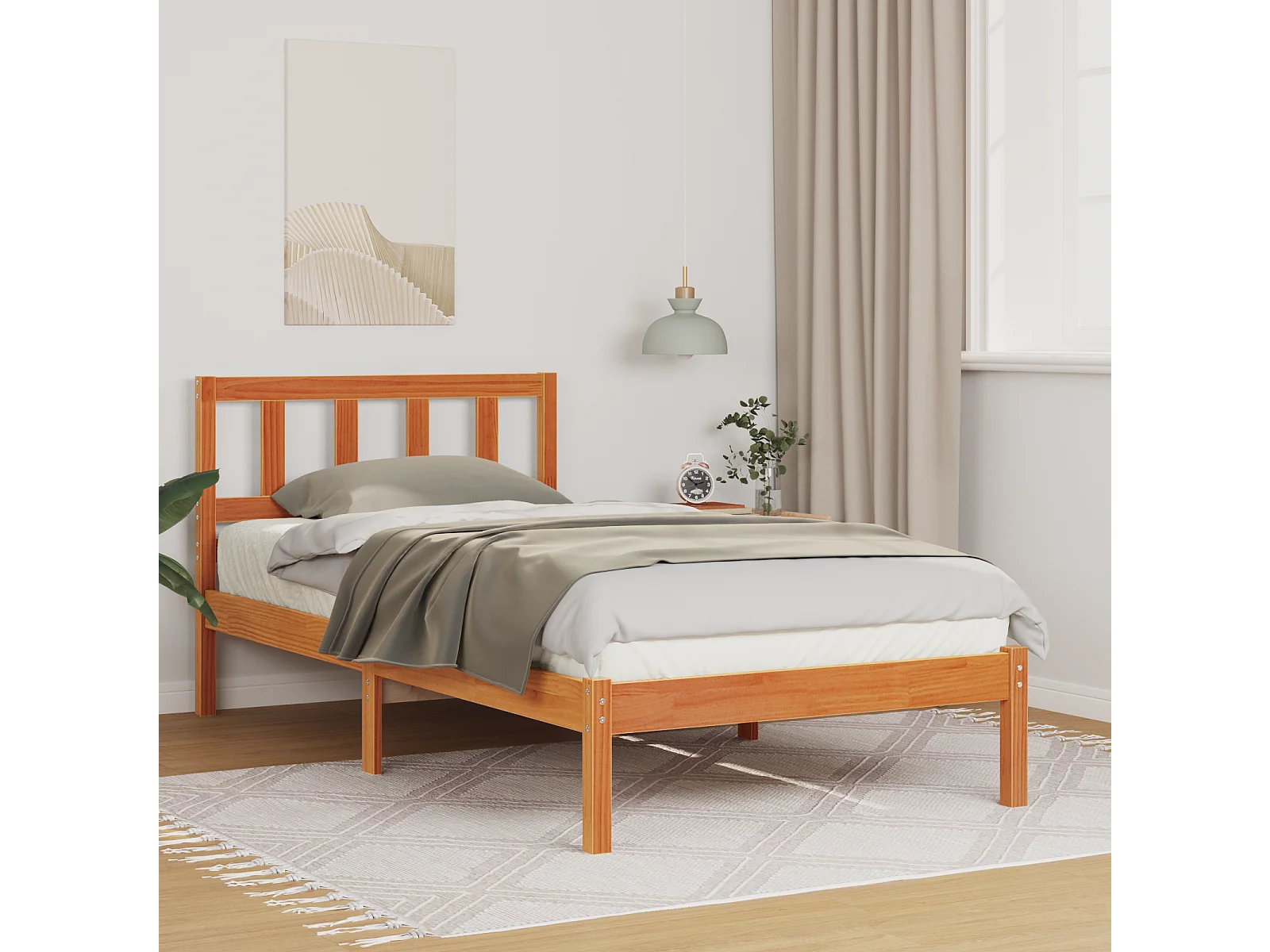 Cadre de lit sans matelas cire marron 100x200cm bois pin massif