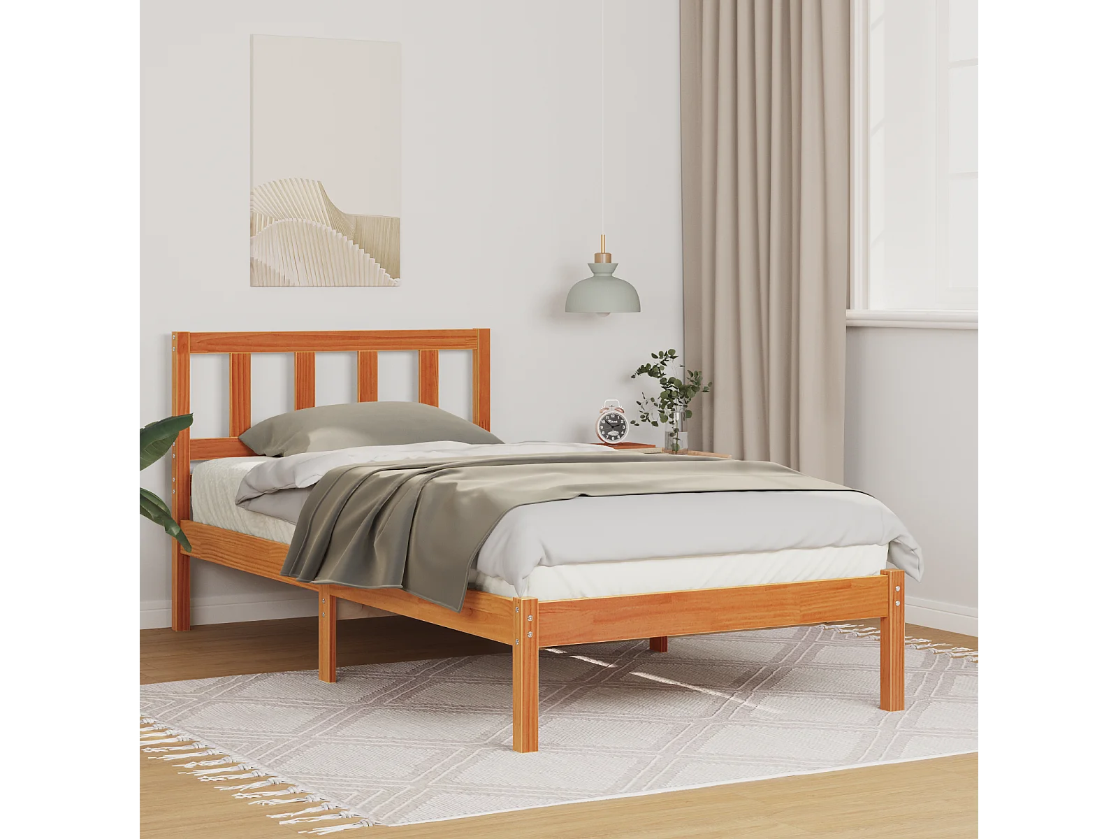 Lit simple | Lit adulte, enfant | Cadre de lit marron miel bois massif 75x190 cm