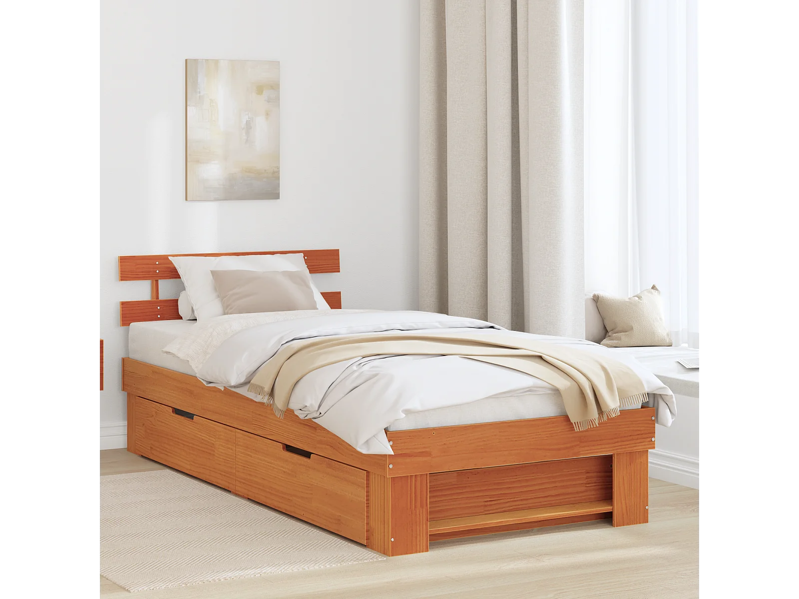 Lit simple | Lit adulte, enfant | Cadre de lit Marron cire 75x190 cm Bois massif en pin