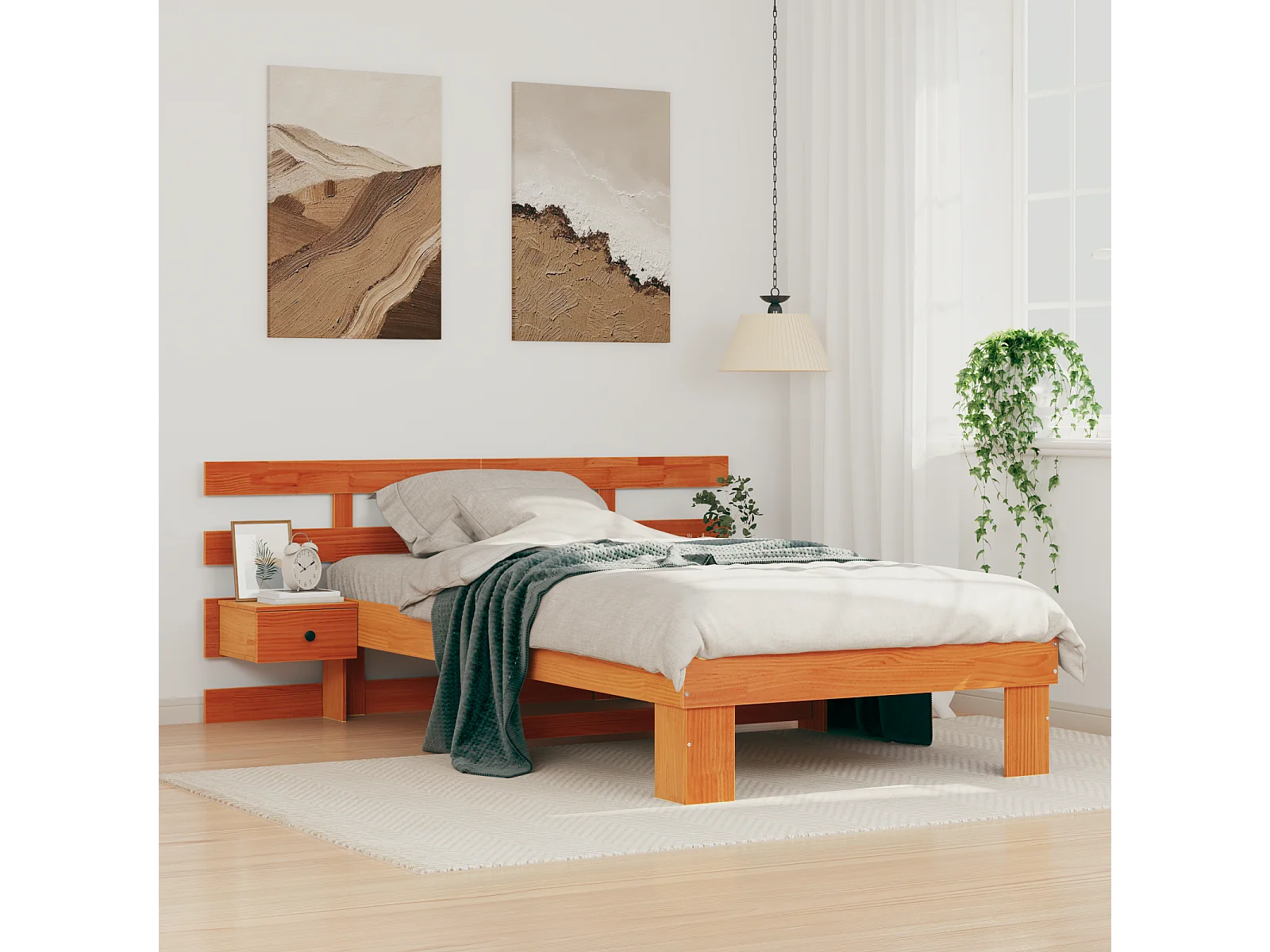 Lit simple | Lit adulte, enfant | Cadre de lit Marron cire 80x200 cm Bois massif en pin