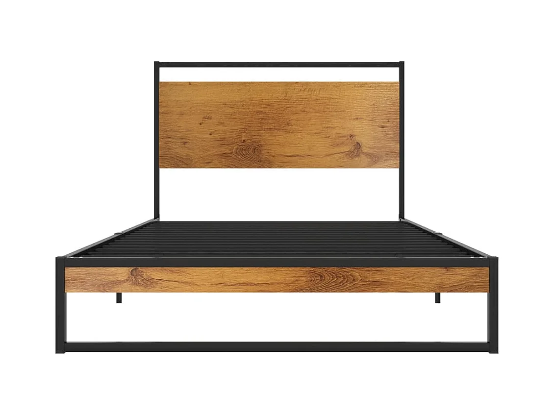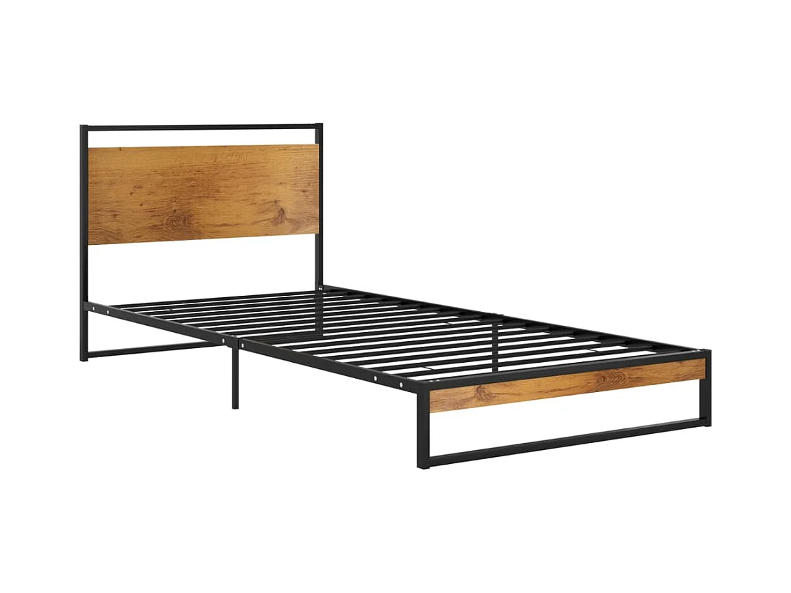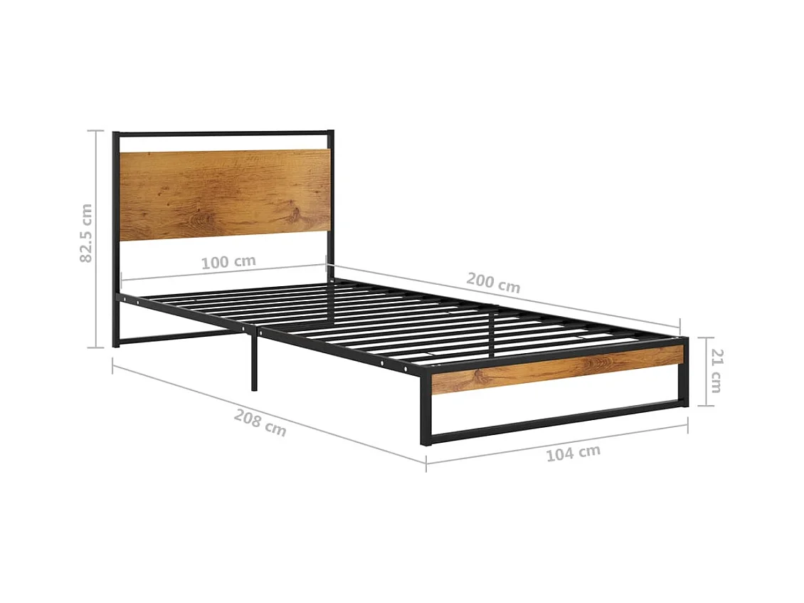 Cadre de lit Noir Métal et bois de chêne massif 100x200 cm