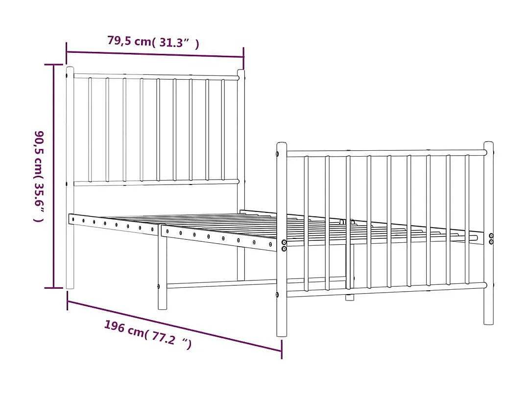 Lit simple | Lit adulte, enfant | Cadre de lit métal avec pied de lit blanc 75x190cm