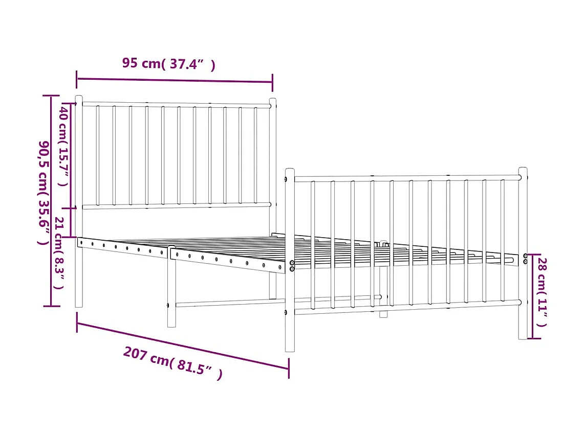 Lit simple | Lit adulte, enfant | Cadre de lit métal avec pied de lit blanc 90x200cm
