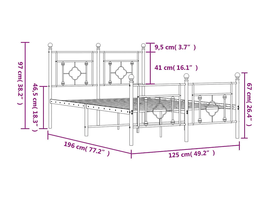 Lit simple | Lit adulte, enfant | Cadre de lit métal avec pied de lit noir 120x190cm