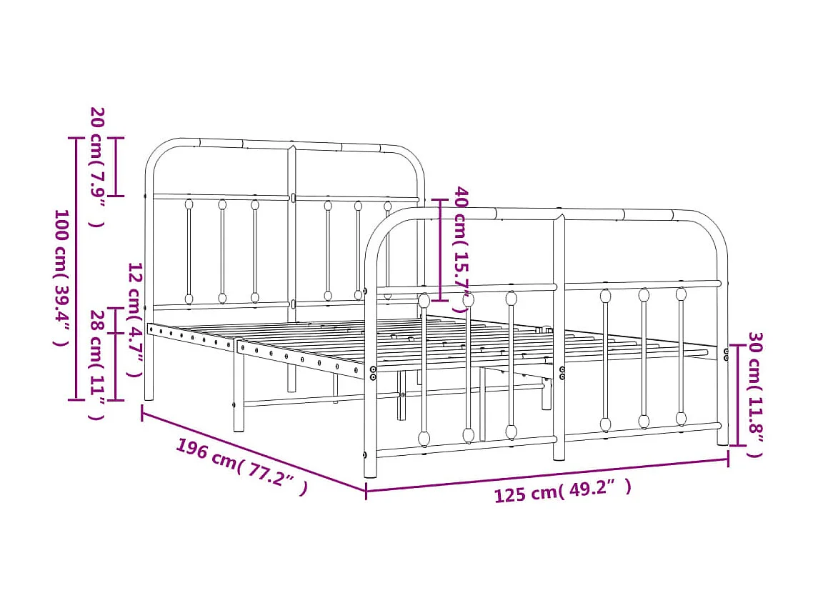 Lit simple | Lit adulte, enfant | Cadre de lit métal avec pied de lit noir 120x190cm