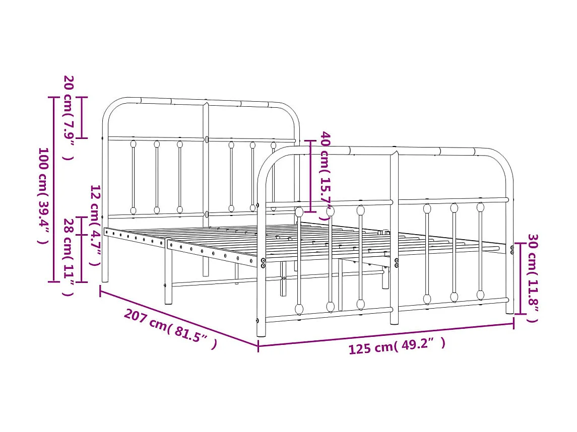 Lit simple | Lit adulte, enfant | Cadre de lit métal avec pied de lit noir 120x200cm