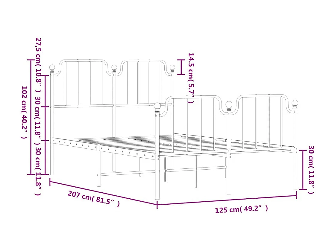 Lit simple | Lit adulte, enfant | Cadre de lit métal avec pied de lit noir 120x200cm