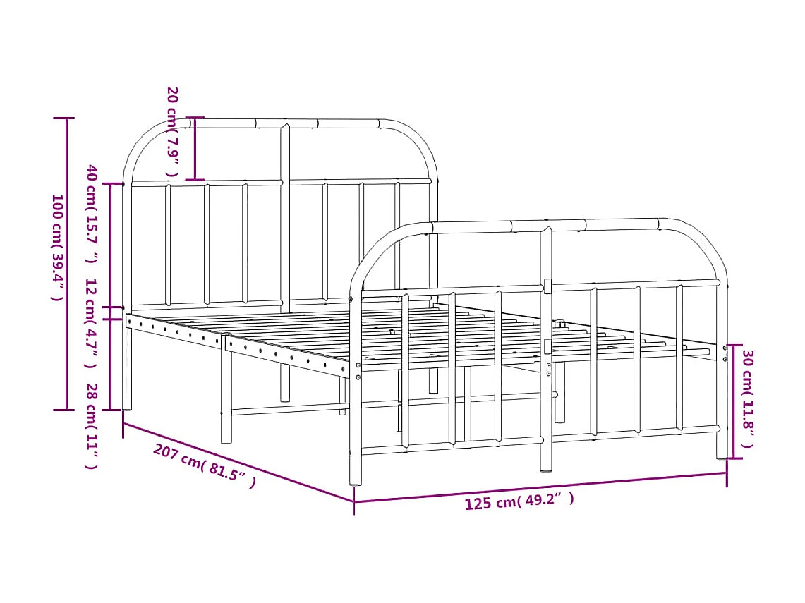 Lit simple | Lit adulte, enfant | Cadre de lit métal avec pied de lit noir 120x200cm