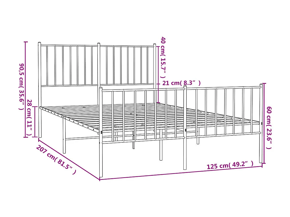 Cadre de lit métal sans matelas avec pied de lit noir 120x200cm