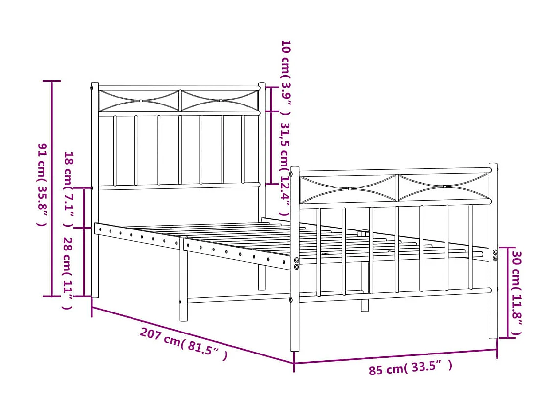 Lit-80x200 cm métal + tête de lit/pied de lit noir HOQW82865