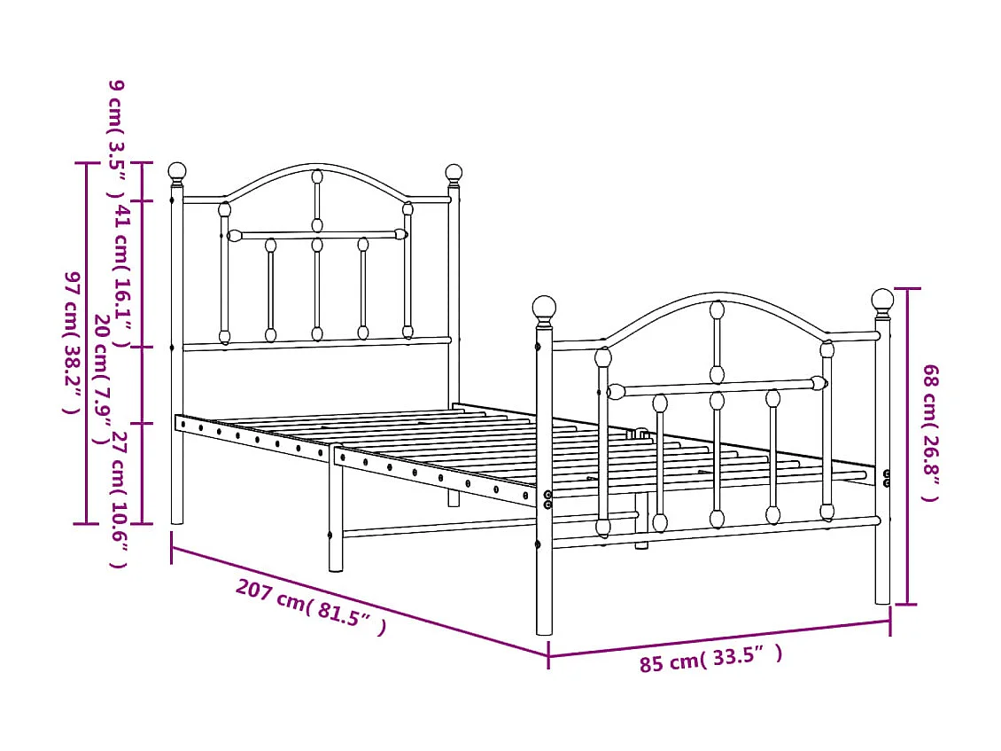 Lit-80x200 cm métal + tête de lit/pied de lit noir HOQW40581