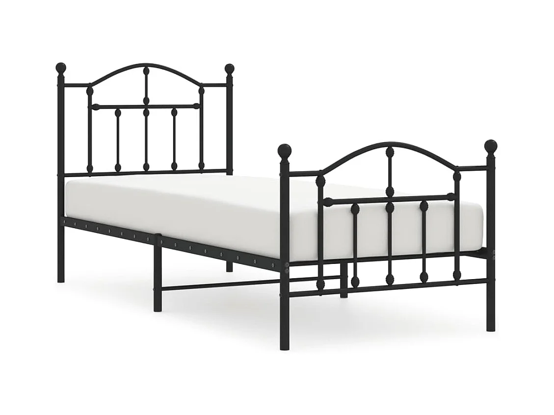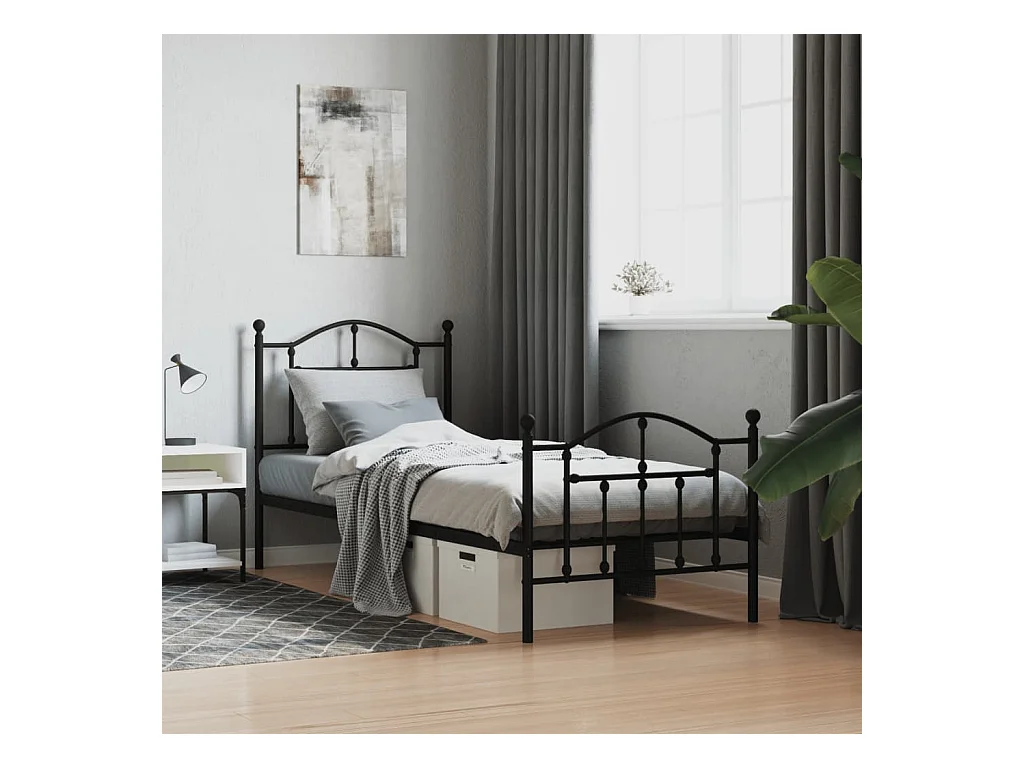 Cadre de lit métal avec tête de lit/pied de lit noir 90x190 cm