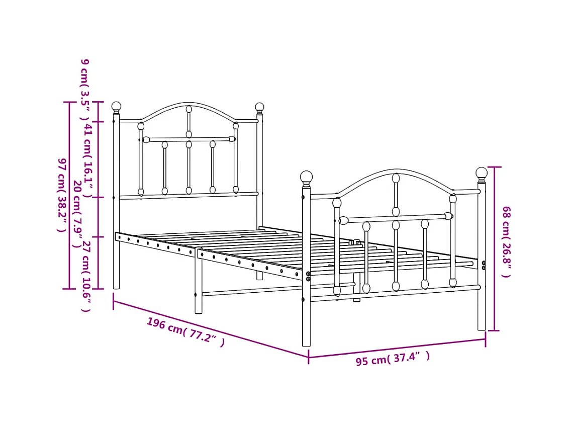 Cadre de lit métal sans matelas avec pied de lit noir 90x190 cm