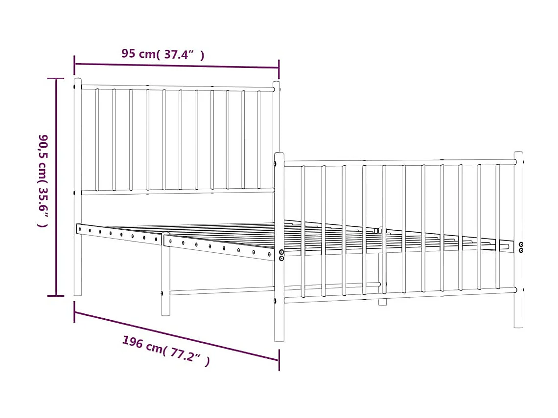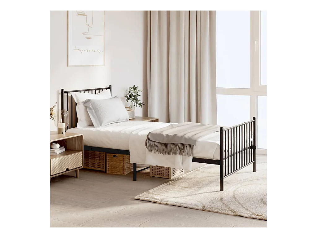 Cadre de lit métal sans matelas avec pied de lit noir 90x190 cm