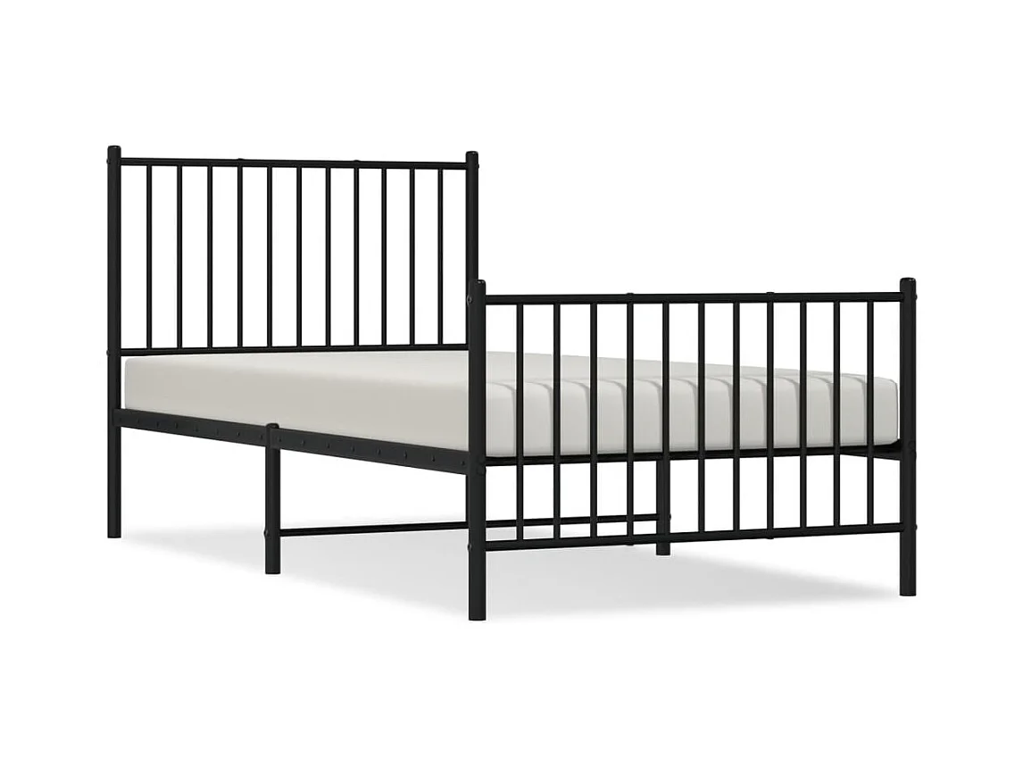 Cadre de lit métal avec tête de lit/pied de lit noir 90x190 cm