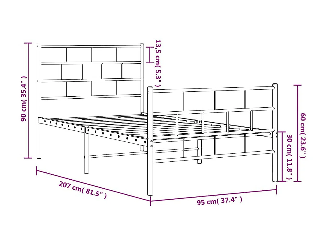 Cadre de lit métal avec tête de lit/pied de lit noir 90x200 cm