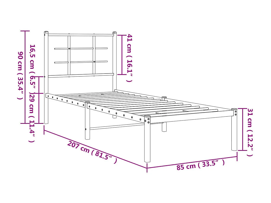 Lit simple | Lit adulte, enfant | Cadre de lit métal avec pied de lit blanc 80x200cm