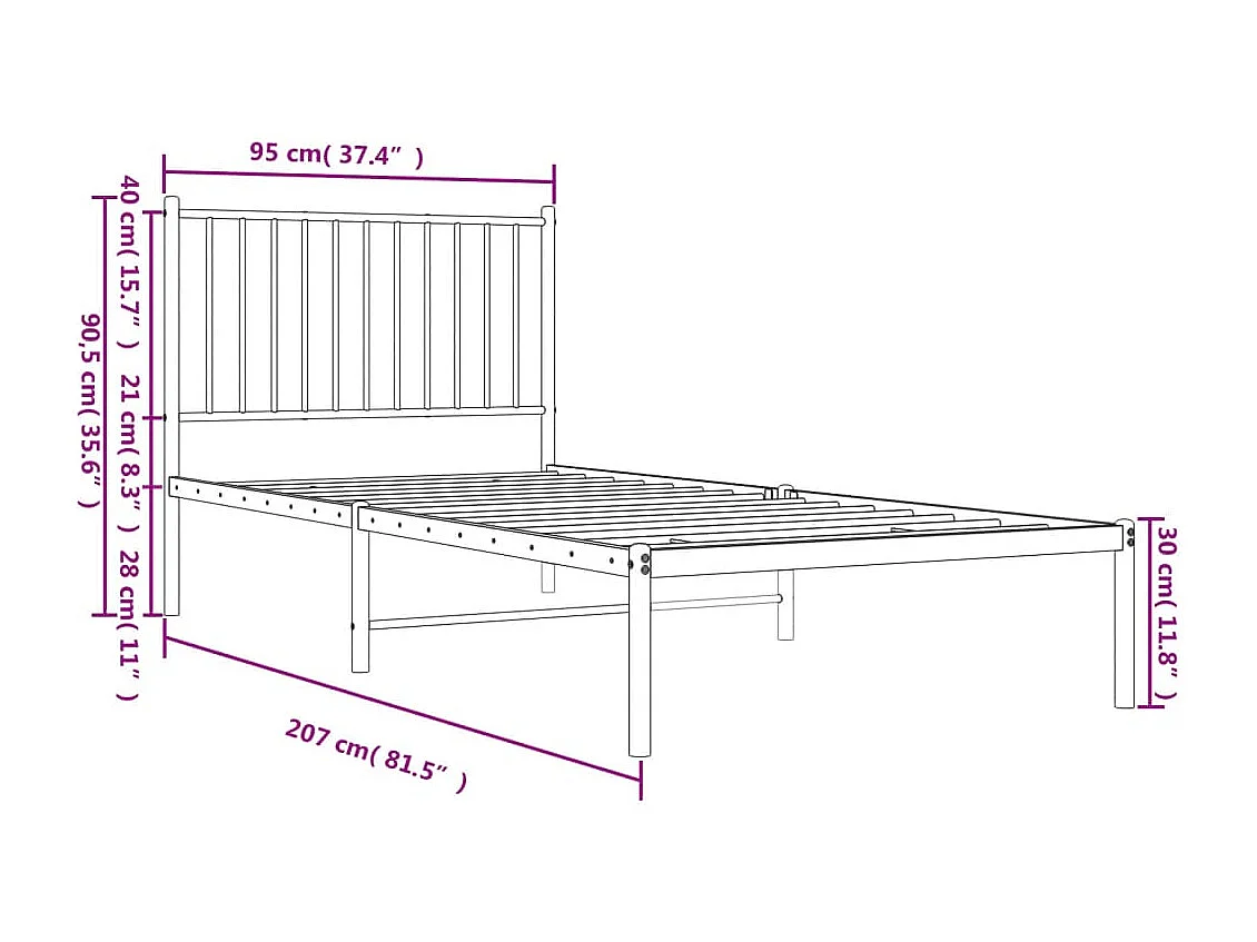 Lit-90x200 cm métal + tête de lit blanc HOQW30171