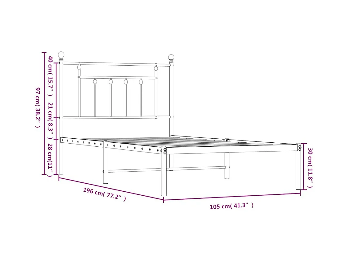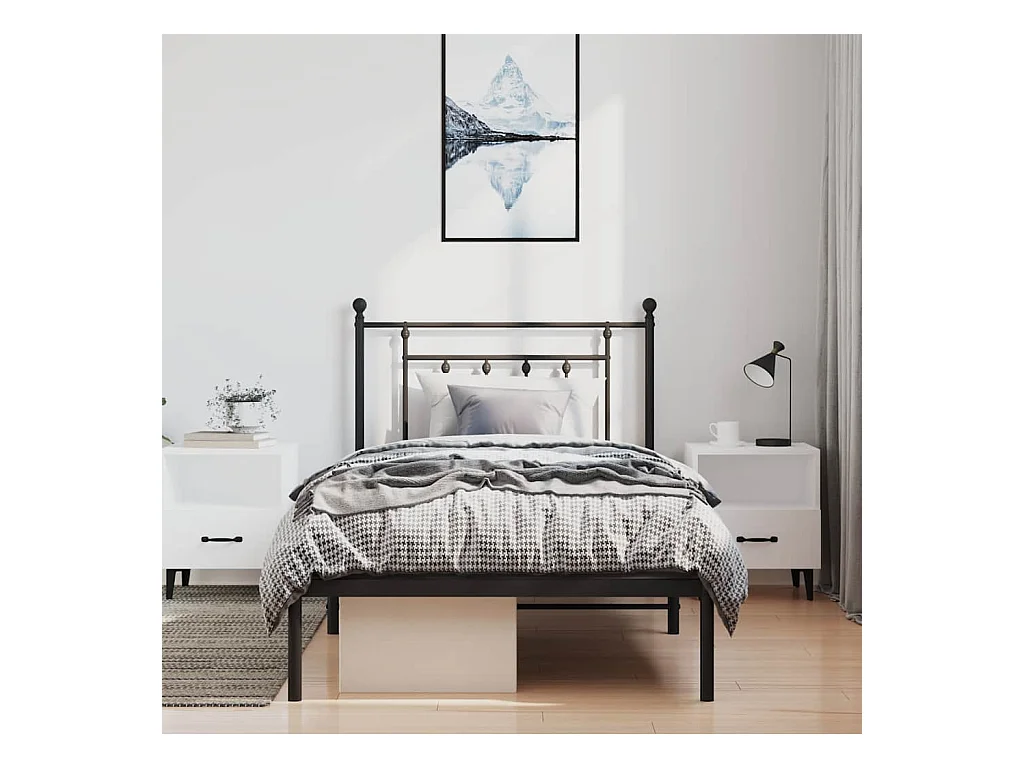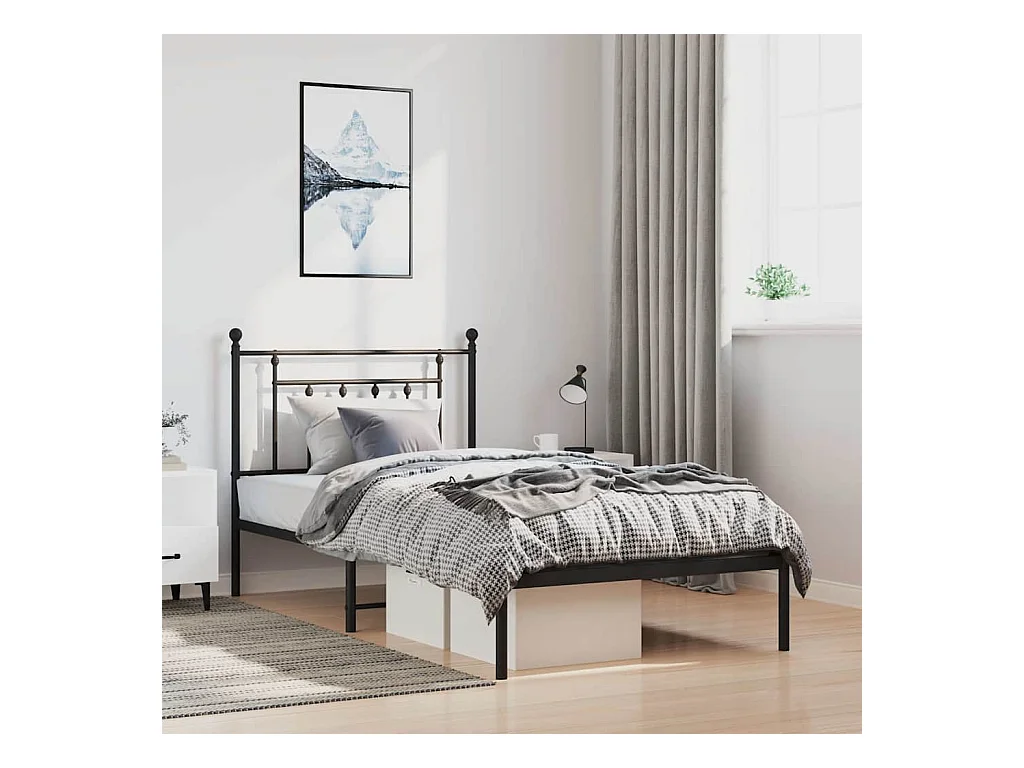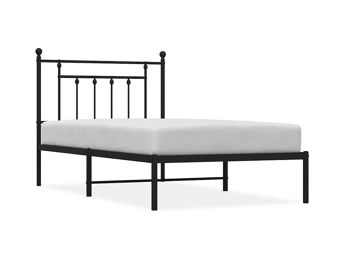Cadre de lit métal avec tête de lit noir 90x190 cm