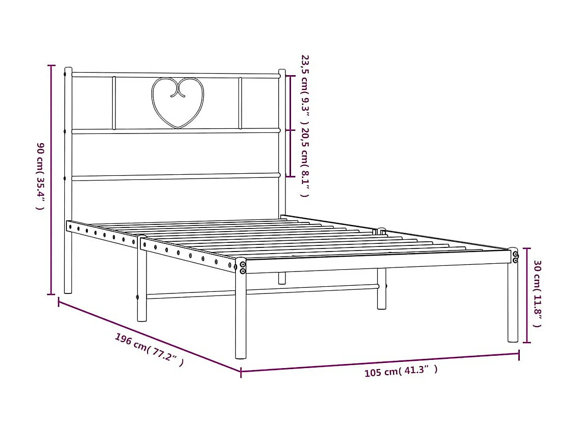 Lit simple | Lit adulte, enfant | Cadre de lit métal avec tête de lit noir 100x190cm